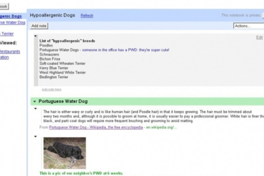 Caderno de anotações online, o conceito do Notebook se assemelhava aos de Evernote e outros blocos de nota virtuais de hoje. Permaneceu online de 2006 a 2011, e acabou sucedido pelo Google Keep neste ano.