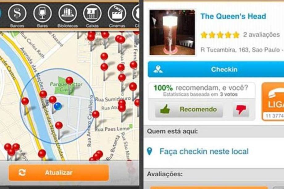 Grátis, em português, para iPhone/iPad, Android e Windows Phone O aplicativo do Apontador permite localizar bares, restaurantes, hotéis, bancos, estacionamentos e outros estabelecimentos. Segundo os autores, ele tem mais de 7 milhões de estabelecimentos cadastrados. É possível pesquisar locais e ver sua localização no mapa, fotos, informações gerais e avaliações de outros usuários. O app ainda funciona como uma rede social no estilo do Foursquare. Pode-se fazer check-in num local e acumular pontos ao compartilhar informações e fotos. O Apontador, que já é popular entre os usuários de iPhone e Android, ganhou sua versão para Windows Phone nesta semana.