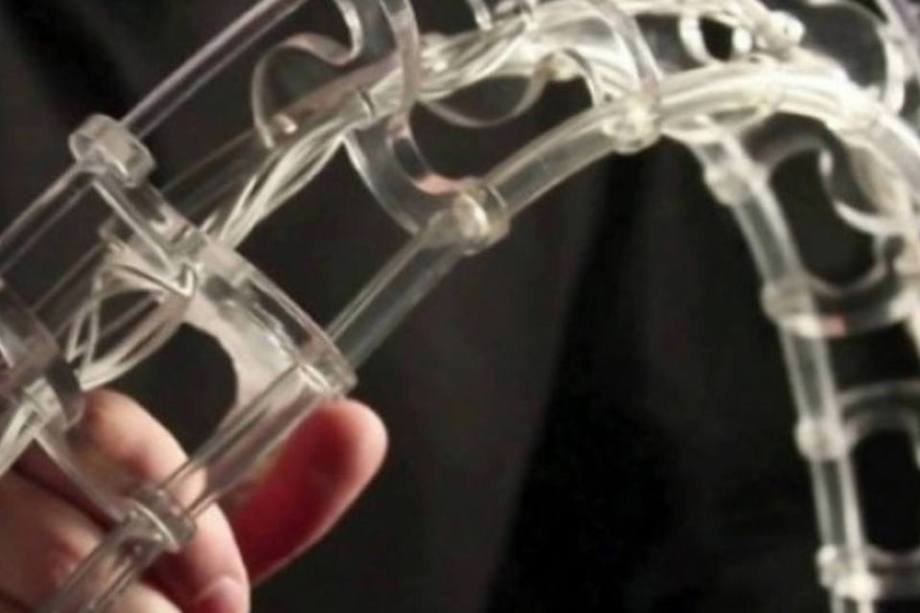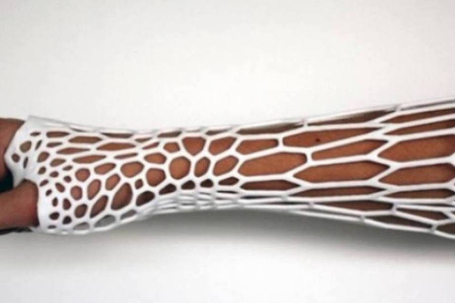 10/12  (Divulgação) 	Um pesquisador criou com ajuda de uma impressora 3D o Cortex, um exoesqueleto capaz de imobilizar membros fraturados. O Cortex é feito com um polímero de plástico. O exoesqueleto funciona como o gesso, mas com o diferencial de ser ventilado, leve, higiênico, ecológico e fino o suficiente para caber em uma manga da camisa. Além desses benefícios, o Cortex pode ser molhado no banho, ao contrário do gesso, que é pesado, coça e pode até dar mau cheiro.	A invenção é do designer Jake Evill, pesquisador da Victoria University of Wellington, na Nova Zelândia. Com ajuda do Kinect para a digitalização 3D, Evill produziu um protótipo do Cortex, feito de plástico. Ao fazer um escaneamento 3D e exames de raios-X do paciente, o sistema constrói uma peça sob medida que sirva para imobilizar o membro fraturado.	As partes mais densas do molde ficam concentradas em torno da fratura. Mas a peça também pode ser impressa em duas partes e depois montada com ajuda de prendedores permanentes. Quando o membro estiver totalmente recuperado, o exoesqueleto precisa ser serrado em um hospital.