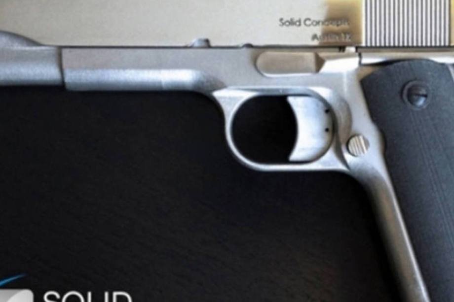 8/12  (Divulgação) 	A empresa Defense Distributed publicou, em maio, um vídeo que espantou o mundo ao mostrar os testes dos primeiros disparos feitos pela primeira arma de fogo feita em impressora 3D. Os arquivos do projeto foram disponibilizados em seu site oficial e em três dias foram feitos 100 mil downloads. No Brasil, contruí-la pode dar cadeia por porte ilegal de arma.	Seis meses depois, a empresa Solid Concepts apresentou a primeira arma de metal do mundo feita em uma impressora 3D capaz de disparar mais de 50 balas.	Segundo a empresa, a ideia é agregar mais potencial à impressão 3D, mostrando que essa tecnologia pode produzir mais do que réplicas da "cabeça de Yoda". A companhia também informa ser "a única provedora de serviços de impressão 3D com uma licença federal de armas de fogo".