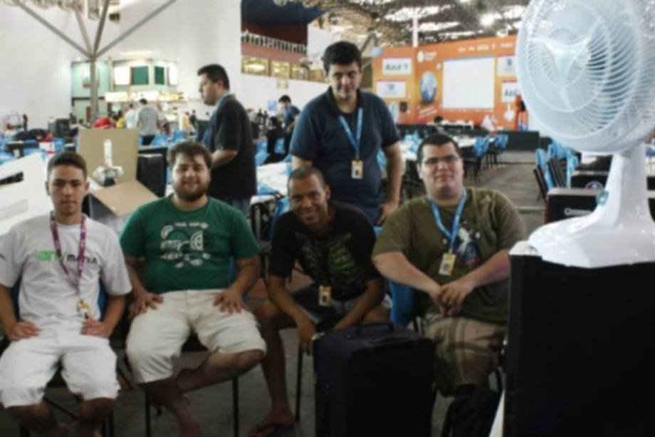 Alexandre, Matheus, Kléber, Patrícia e Anderson também são de longe: Goiás. Eles vieram em uma caravana de dois ônibus, cheios de estudantes da Universidade Federal de Goiás. Os cinco – e mais alguns dos colegas – fazem parte do Núcleo de Robótica da instituição, o Pequi Mecânico da bandeira.