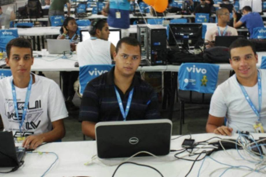 Thom, Hian e Ítallo vieram com uma caravana bahiana. São estudantes da Universidade Federal do Recôncavo da Bahia, e junto deles, ainda está toda a mesa logo atrás, da qual fugiram por falta de conexão com a internet.