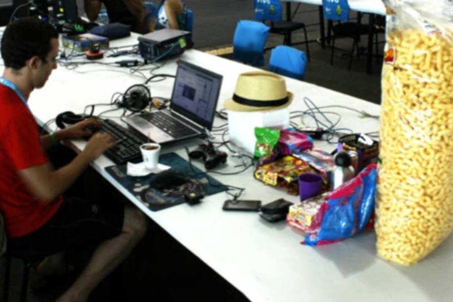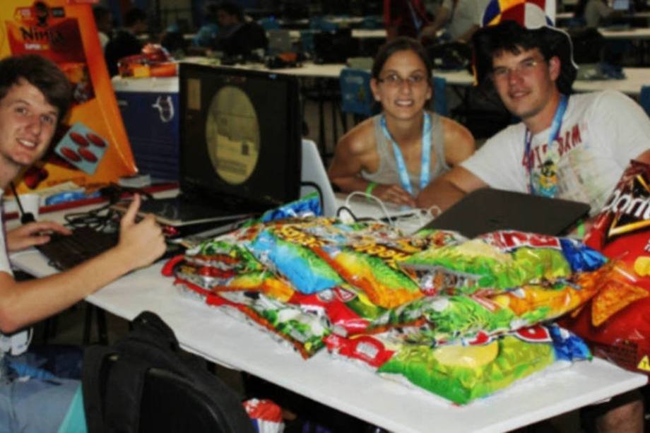 Igualmente equipados estavam Matheus, Tuanny e Vincent, da PUC de Curitiba (PR). Engenheiros e acompanhados de mais um grupo, trazem, além de salgadinhos (todos de Vincent, segundo Matheus), projetos para apresentar. Ano passado, por exemplo, mostraram o Bebê a Bordo, que ajuda a evitar que mães esqueçam os filhos no carro.