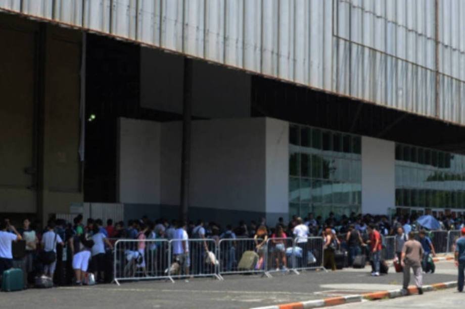 Apesar da organização com grades e até tranquila, alguns participantes seguiam do lado de fora até a hora do almoço.