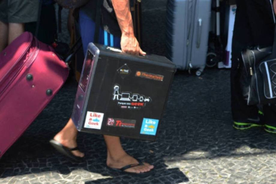E uma boa parte trazia consigo, na mão, os gabinetes que seriam montados nas muitas mesas espalhadas pela arena.