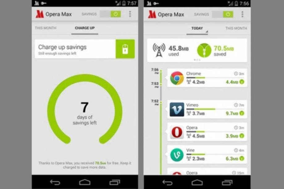 Opera Max é um aplicativo capaz de comprimir dados de navegação web tanto ao acessar sites quanto ao usar aplicativos em dispositivos com sistema Android. Para reduzir o consumo de internet, quando o usuário baixa o app, seu dispositivo direciona todo o tráfego para a nuvem de economia da Opera, por meio de uma rede virtual privada (VPN). Todas as solicitações de dados que não são criptografadas vão para os servidores da Opera, que são capazes de diminuir o tamanho de vídeos, imagens e páginas web praticamente sem atraso. Não são, no entanto, todos os aplicativos que podem ter o tráfego reduzido, uma vez que apps criptografados, como o Facebook e a Netflix, não podem ser acessados pelo Opera Max.