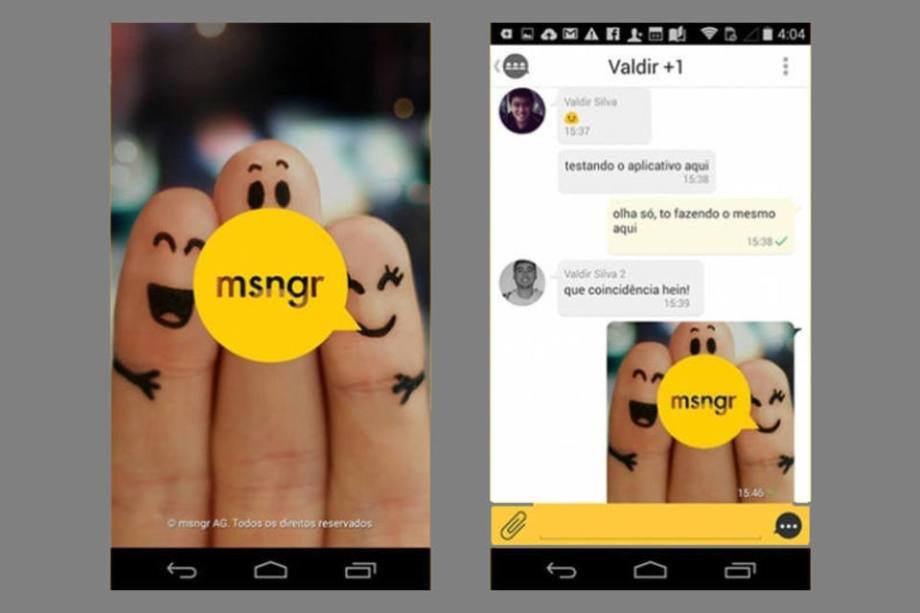 Além dele, outro que merece destaque pelo serviço e pelo número de downloads é o msngr. Esse aplicativo de bate-papo tem como intenção fazer com que seus usuários consigam trocar mensagens de graça (sem ter custos com créditos e nem com dados de tráfego na internet).