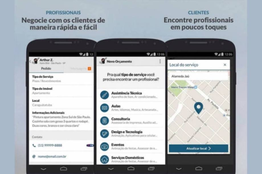 Assim que começar a usar o app, o usuário precisará descrever qual tipo de serviço precisa. Para isso, será necessário responder a algumas perguntas simples que irão compor a solicitação. Os serviços são divididos em 8 categorias que depois se subdividem em outras 100 subcategorias. Se o usuário escolher, por exemplo, a categoria “Reformas e Reparos”, ele será então questionado sobre qual tipo de reparo precisa. Quando for finalizar a solicitação de serviço, o usuário terá que fazer um cadastro com seu endereço e dados para contato. A partir daí, o aplicativo promete entregar em 24 horas até cinco orçamentos feitos por profissionais da área solicitada.