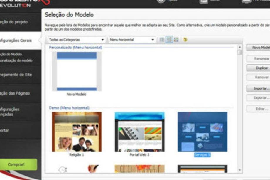 Criar um site “do zero” requer um tanto de conhecimento técnico em linguagens como HTML, PHP e outras. Mas há programas que facilitam o processo – mais até que o DreamWeaver -, como o Website X5, que chegou à versão 10. Em português, o programa se propõe a ajudar você a fazer um site em poucos passos. Para isso, apresenta várias interfaces diferentes, que servem como base para a estrutura completa de um site. É só selecionar uma delas para começar a “desenvolver” a página em cima do modelo, sem a necessidade de saber as linguagens de programação e nem nada parecido. O resultado, claro, não é profissional - faltam recursos para tal -, mas é bem satisfatório e deve servir bem para determinadas situações. Confira aqui um tutorial do programa.