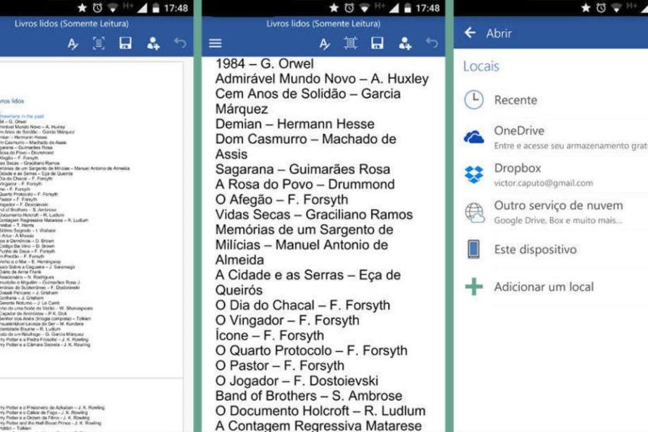 Grátis, em português, para Android, iPhone/iPad e Windows Phone (pré-instalado) A Microsoft liberou em 2015 os apps do pacote Office, em uma mudança de posicionamento. Eles precisam ser baixados isoladamente e não dependem um do outro para o funcionar. O primeiro é o Word, o famoso editor de textos da empresa. O usuário pode visualizar arquivos de texto. Ele pode pegar arquivos da nuvem da Microsoft ou de outras empresas, como Google ou do Dropbox.