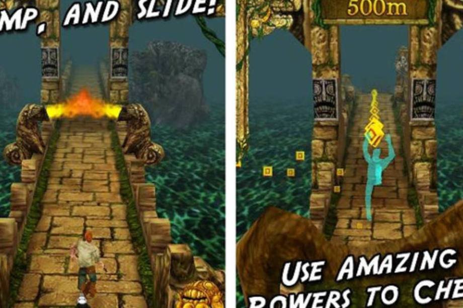 Em Temple Run, você é o ladrão do ídolo amaldiçoado do templo.	Agora, precisa correr muito para salvar sua vida, enquanto corre, você vai coletando moedas com as quais poderá comprar novos poderes para se livrar da perseguição de macacos selvagens. Gire, salte e desvie dos obstáculos.
