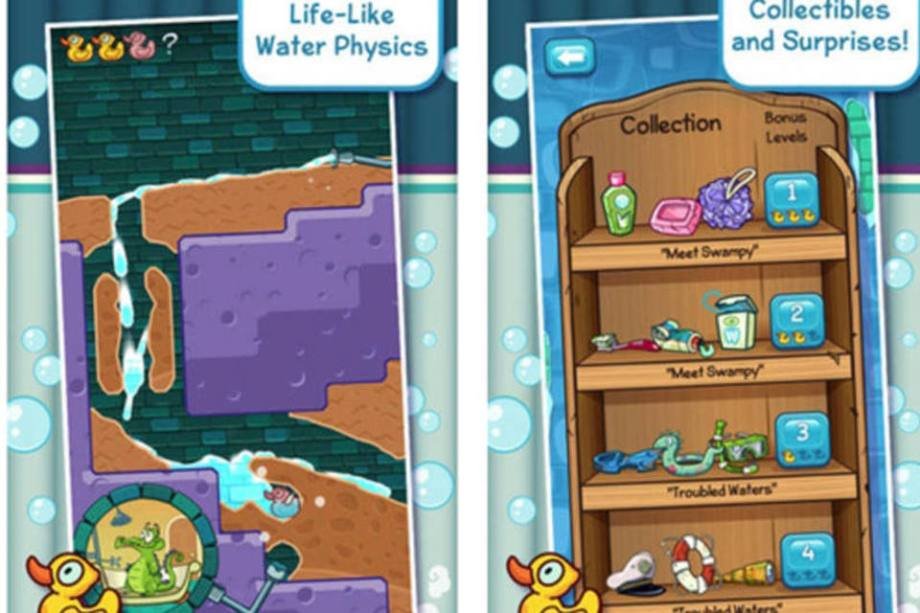 Eleito o melhor jogo do ano por diversos sites e serviços, o game Where's My Water traz mais de 300 puzzles com desafios de física.	Para passar de fase no jogo é preciso desviar de obstáculos como lodo tóxico, armadilhas e gatilhos.	O game apresenta três histórias diferentes, chamadas de "Swampy's Story", "Cranky's Story" e "Lost Levels", cada uma com desafios diferentes para completar.	Where's My Water pode ser baixado na App Store e Google Play a partir de 2 reais. Também há uma versão online do jogo, que pode ser jogada de qualquer navegador.