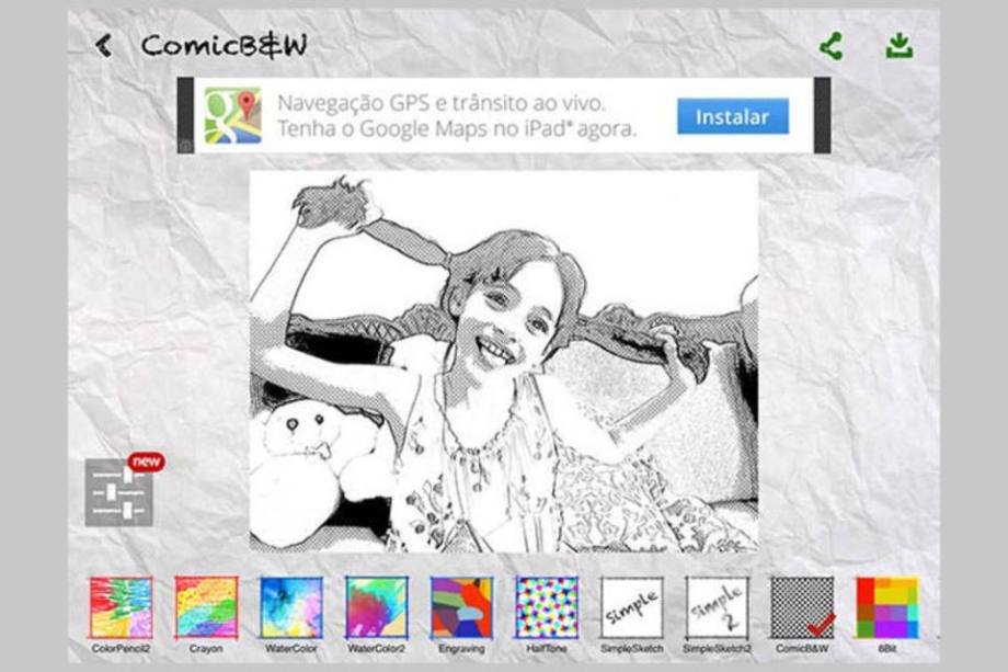iPhone/iPad	O Sketch Guru oferece uma coleção de filtros fotográficos que dão, à imagem, aparência de pintura ou desenho. São 13 opções de efeitos como aquarela, lápis de cor, giz e história em quadrinhos. Os resultados são muito bons. Depois de prontas, as imagens podem ser compartilhadas de várias maneiras. O app exibe anúncios, que podem ser eliminados por 3,99 dólares.