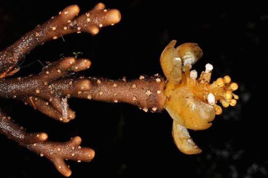 País: Filipinas Esta planta parasita recém-descoberta (e, acredite, já em risco de extinção) tem aparência de coral, mas vive a 1.500 metros de altitude nas encostas do Monte Mingan, nas Filipinas, em áreas de florestas cobertas de musgo. Plantas parasitas não contém clorofila e são incapazes de realizar fotossíntese, por isso se "alimentam" dos nutrientes de outras plantas vivas. Elas possuem órgãos de sucção especiais, que penetram nos feixes condutores da planta hospedeira.